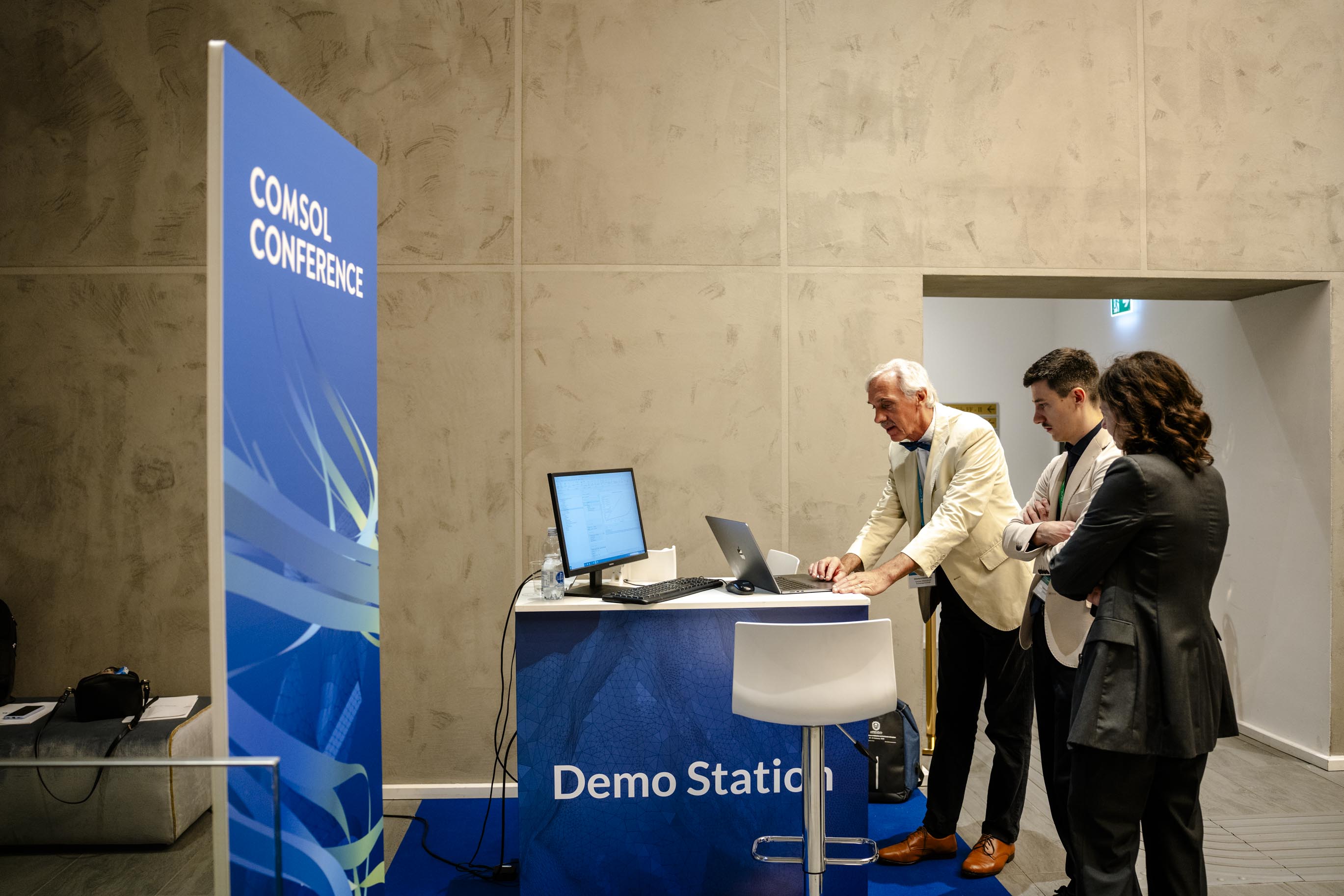 In addition to these talks, the conference included more than 20 minicourses covering in-depth modeling and simulation best practices for different areas of physics as well as demo stations where attendees were able to receive 1-on-1 guidance from our applications engineers. Attendees also saw an exclusive look at the upcoming version of the software, COMSOL Multiphysics® version 6.3, in a keynote talk given by Ruud Börger of COMSOL.